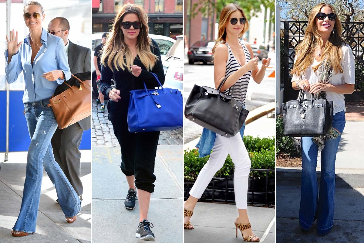 Vier Birkin-Modelle von Heidi Klum, Supermodel Miranda Kerr (3. von links) und zwei weiteren Stars.