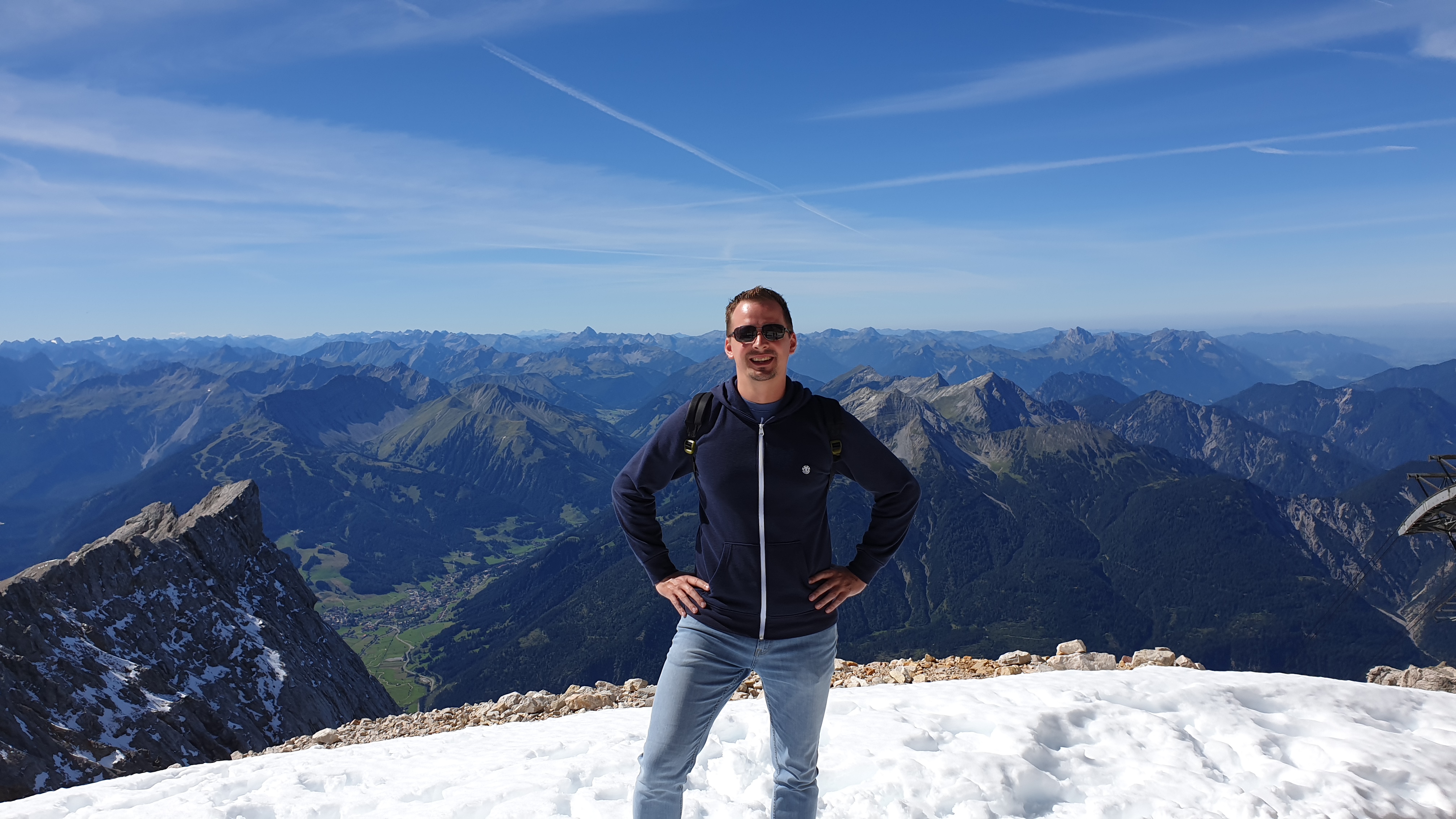 Es ist ein ganz anderes Erlebnis als auf den anderen Bergen, auf denen ich war. Zunächst mal ist die Zugspitze einige Hundert Meter höher und der höchste Punkt der Umgebung. Man kann also weiter gucken, aber es ist auch kälter/windiger und ohne Kletterausrüstung kommt man nicht weit, kann nur einmal auf der recht großen Plattform herumlaufen und das war‘s.
