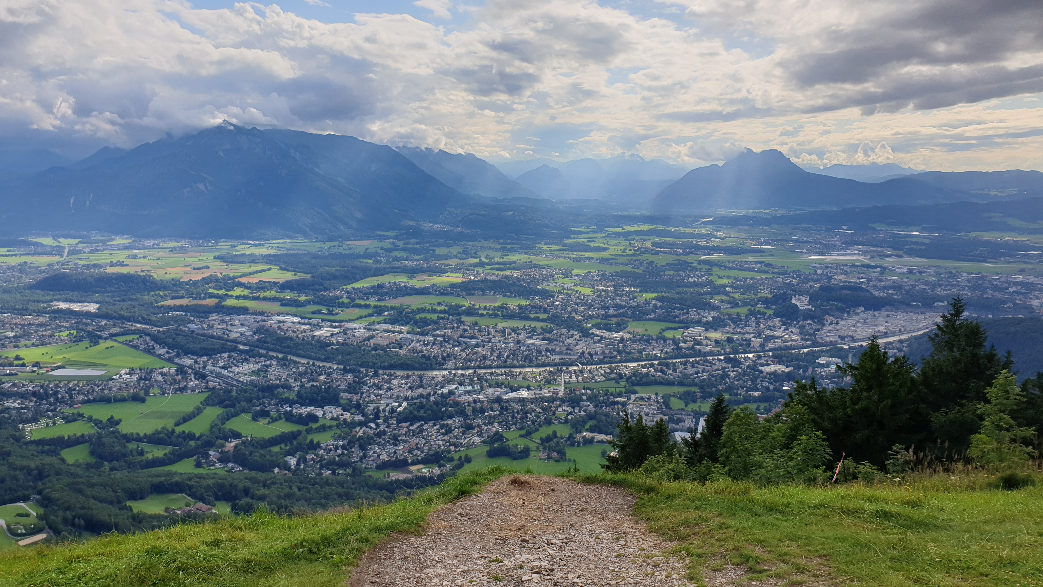 Nachdem ich in Salzburg meinen Mietwagen (später mehr zum Auto) abgeholt hatte, ging es direkt rauf auf den Gaisberg (1287m), den Hausberg von Salzburg. Hier der Blick von oben: