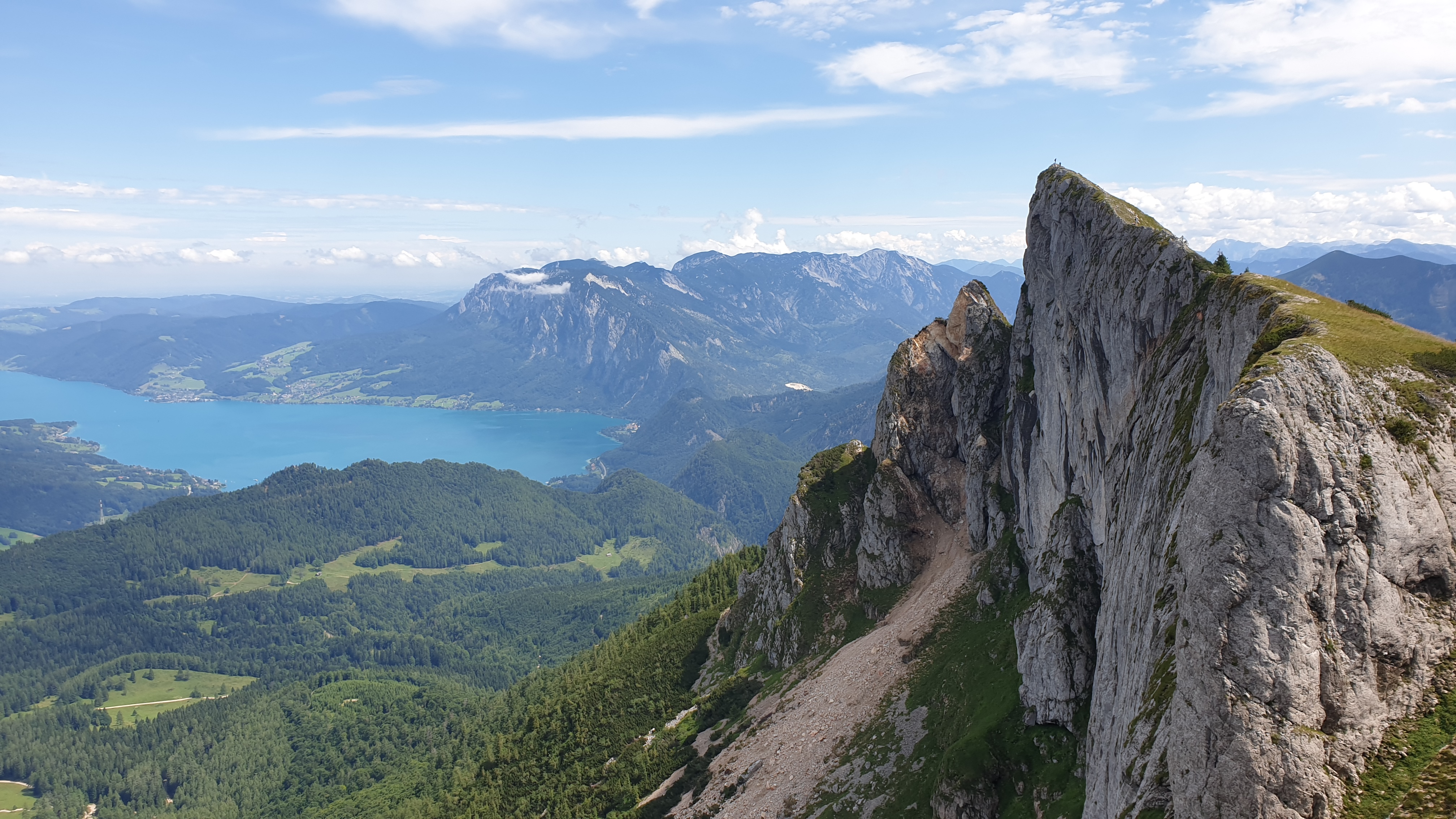 Dort oben kann man wunderbar wandern mit Blick auf 4 Seen (Wolfgangsee, Attersee, Mondsee, Fuschlsee).