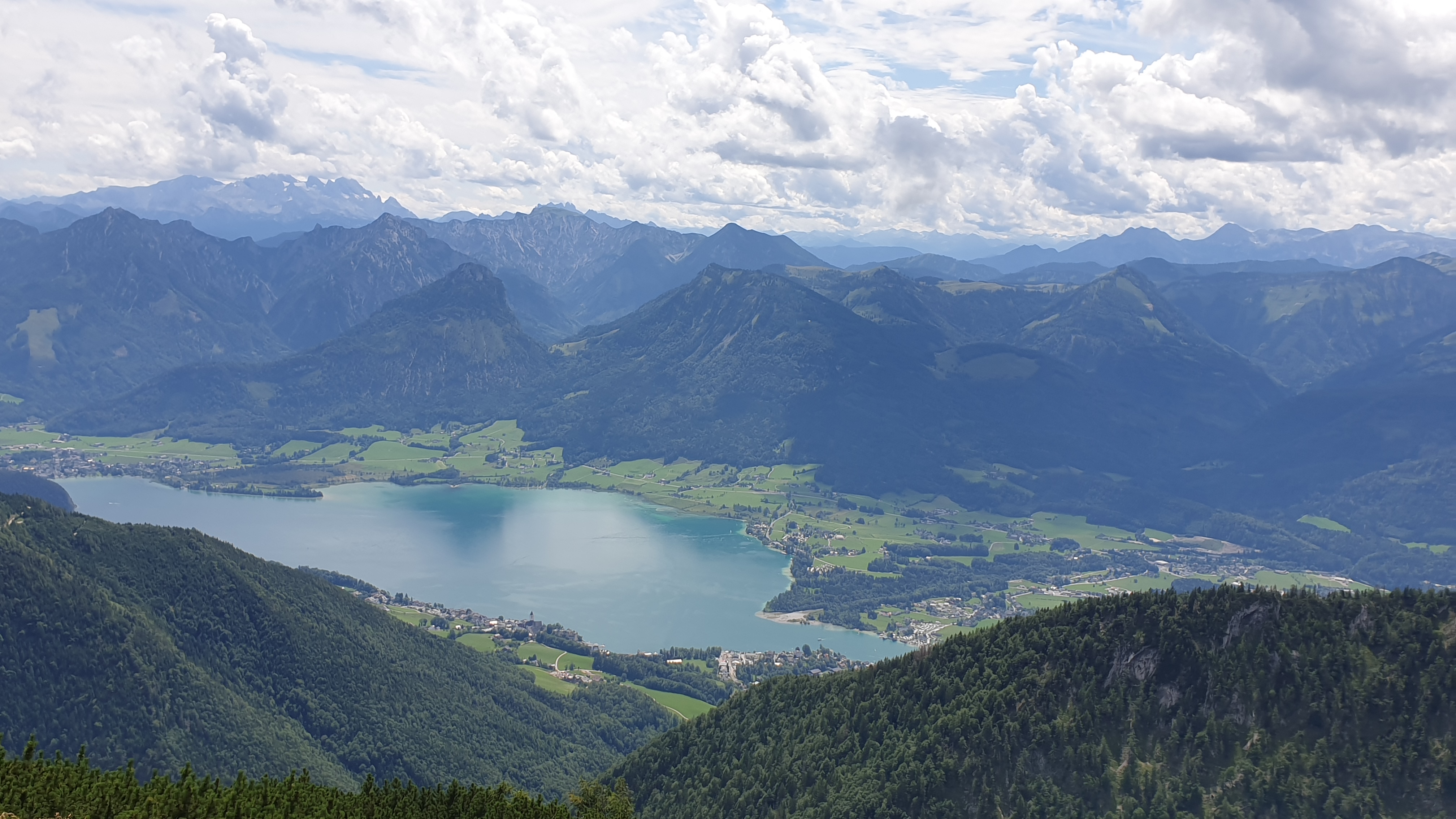 Auf meiner linken Seite sah ich den Wolfgangsee: