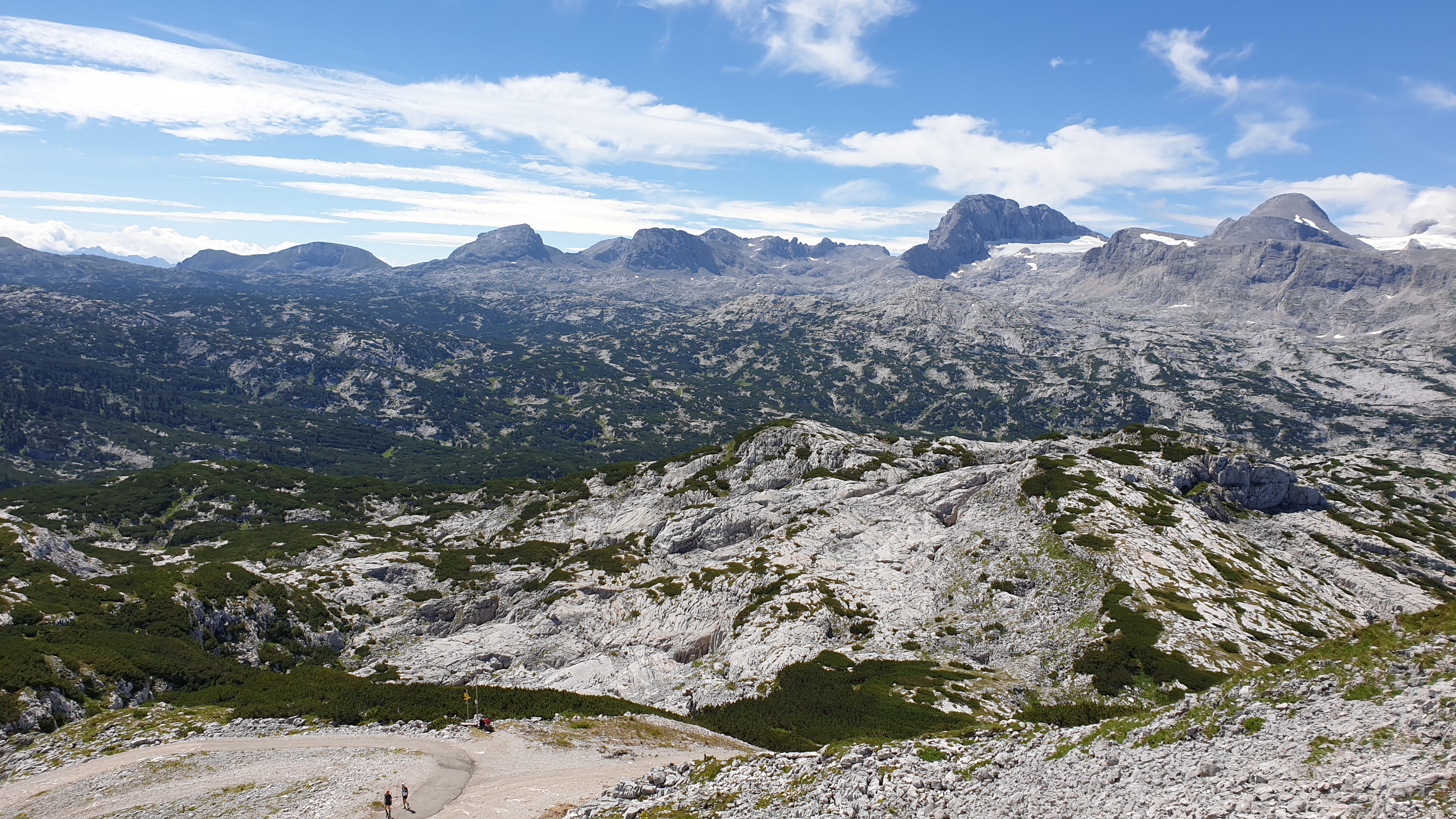 An Tag 6 gab es (endlich wieder) tolles Wetter mit viel Sonne und bis zu 28 Grad. Also ging es nach Obertraun am Hallstätter See. Dort fuhr ich mit der Seilbahn (Dachstein Krippenstein) in zwei Teilstrecken bis auf 2069m.