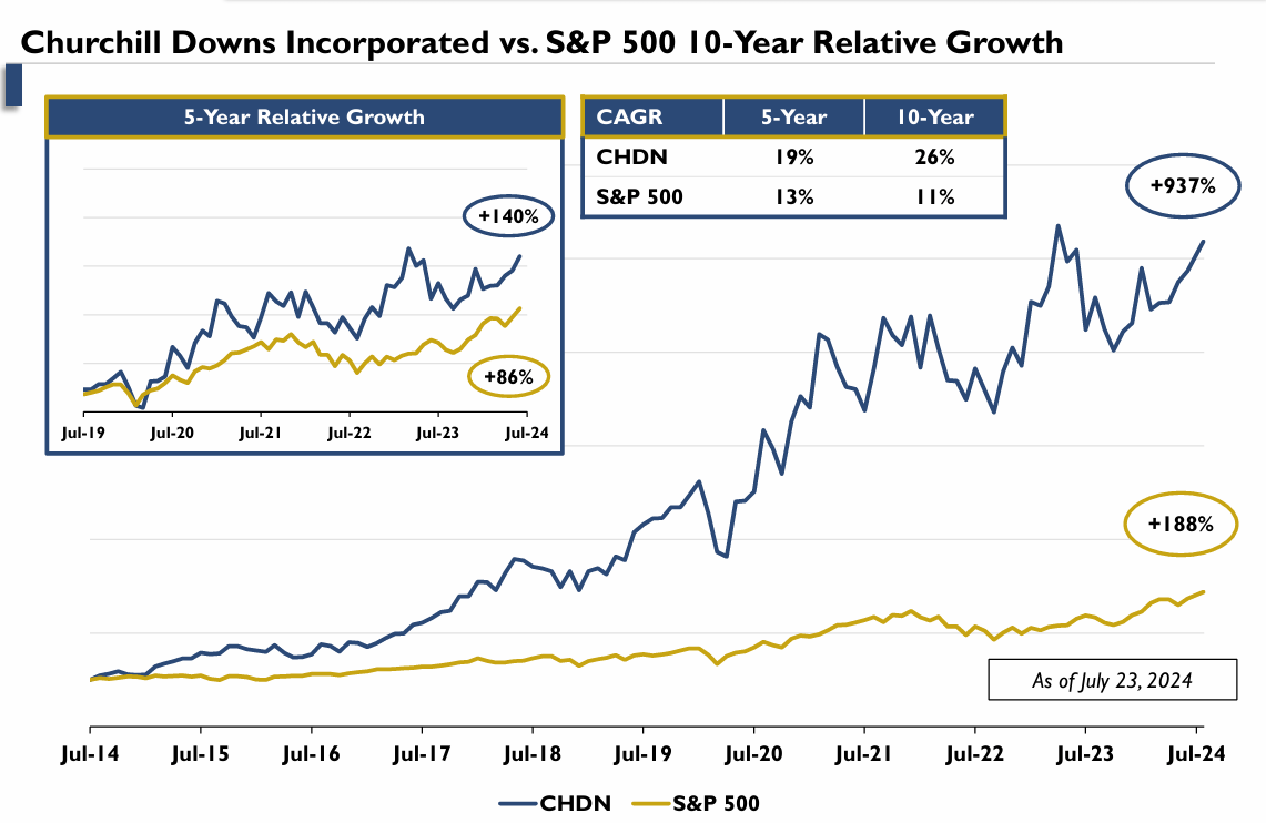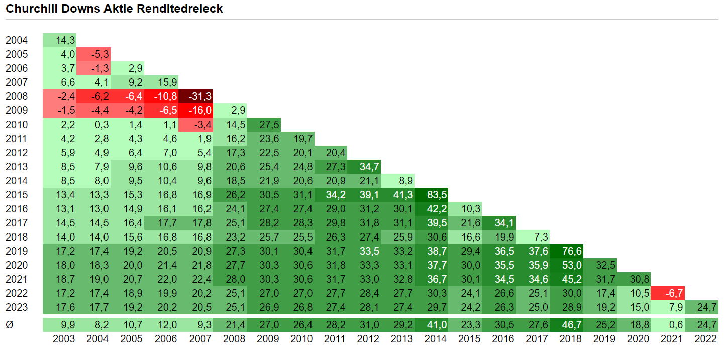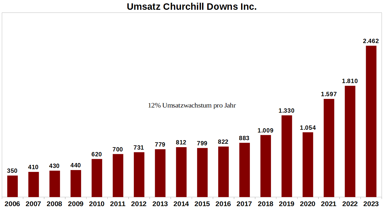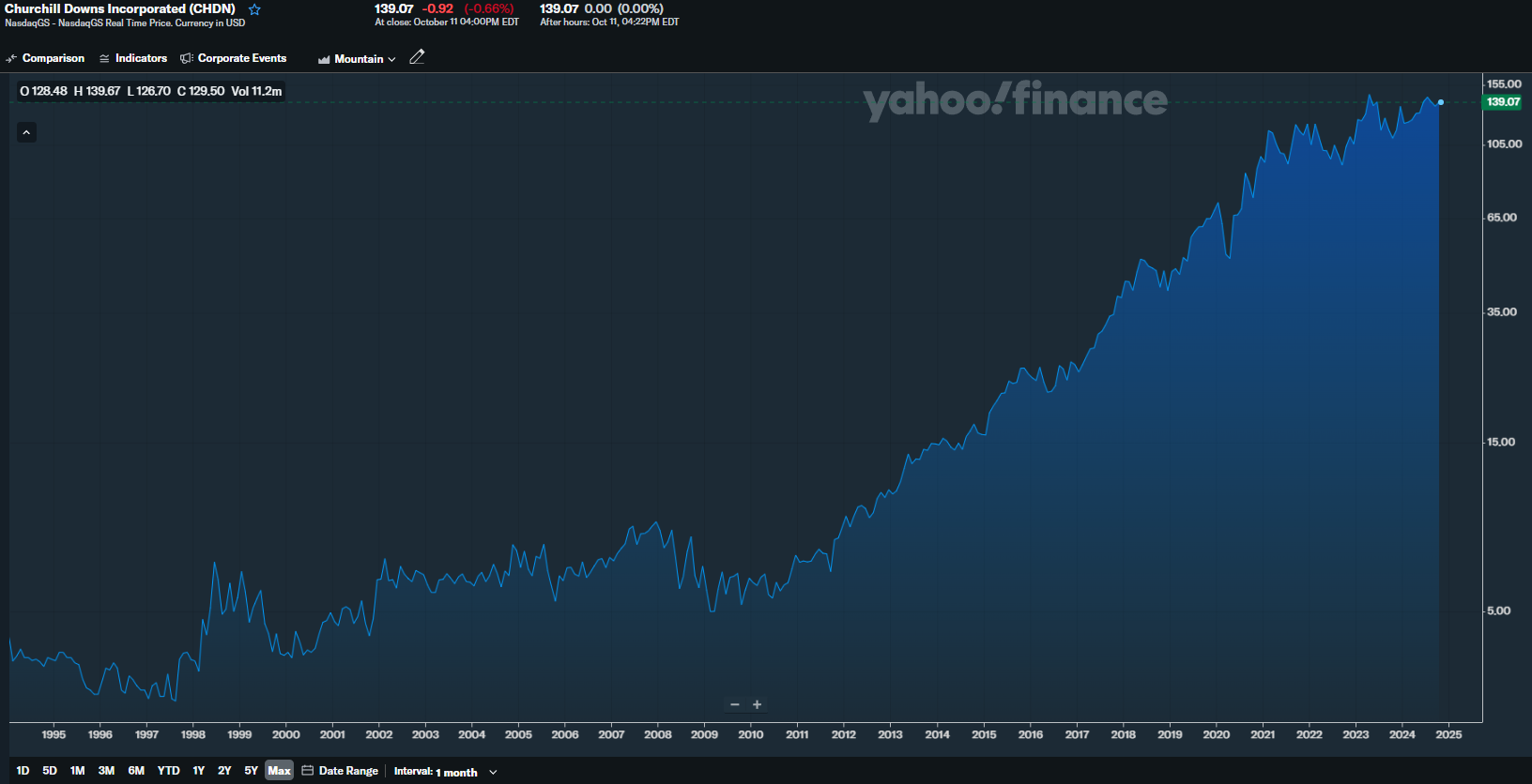 Vor kurzem stieß ich auf ein Unternehmen, welches in mein Beuteschema passt: Churchill Downs Incorporated, benannt nach der Pferderennbahn Churchill Downs, auf der seit 149 Jahren das jährliche Kentucky Derby stattfindet.