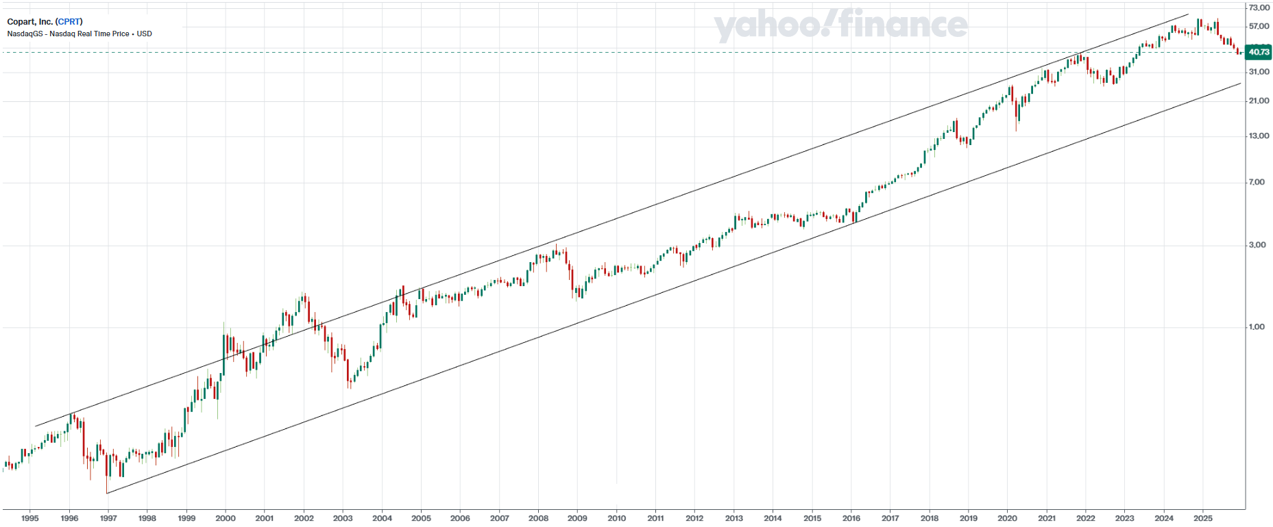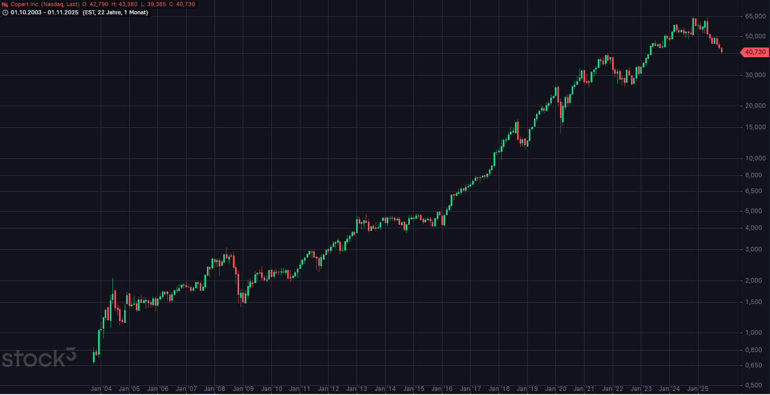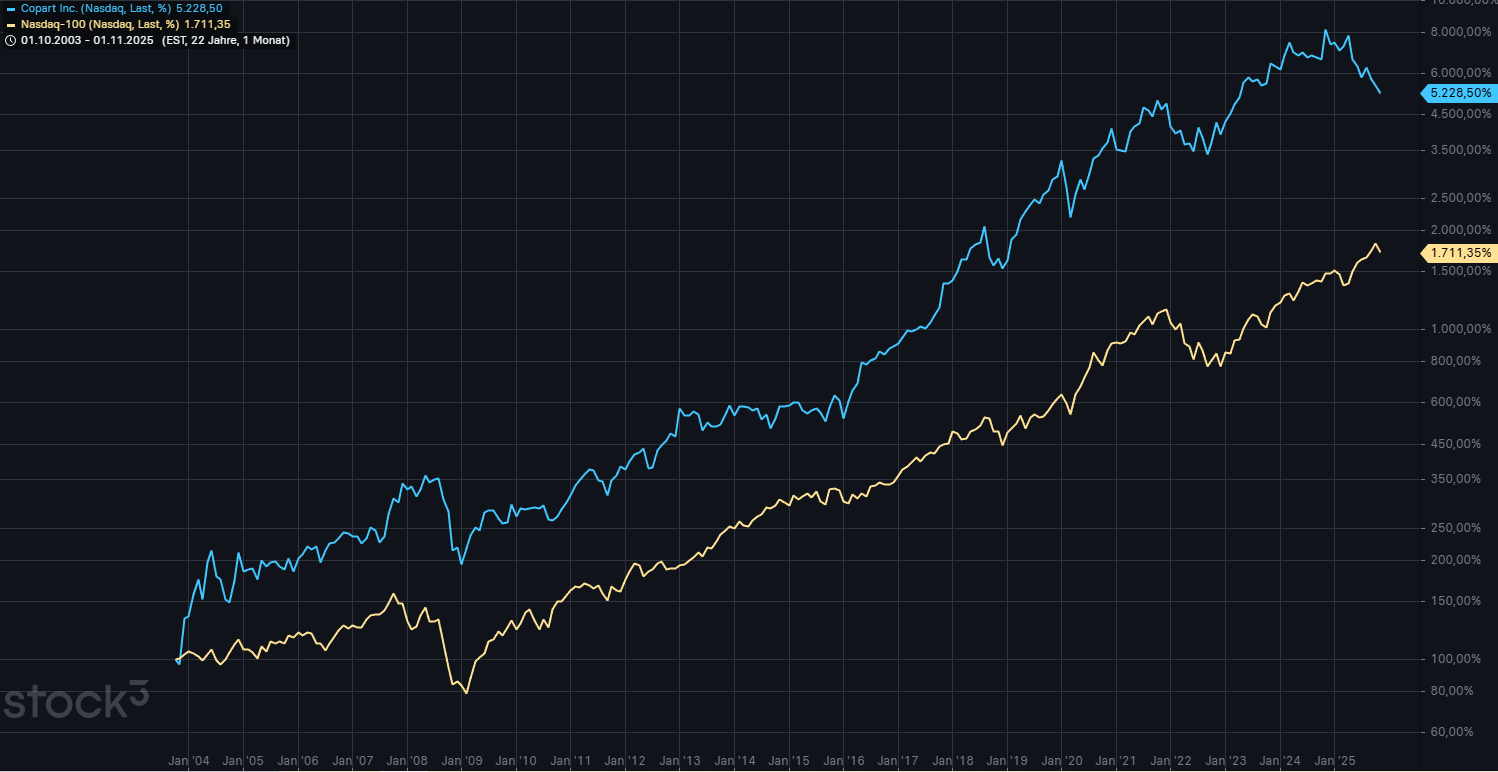 In den 22 Jahren von 2003 bis 2025 hat Copart den US-Technologieindex Nasdaq-100 deutlich outperformt: