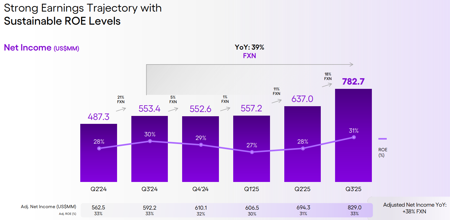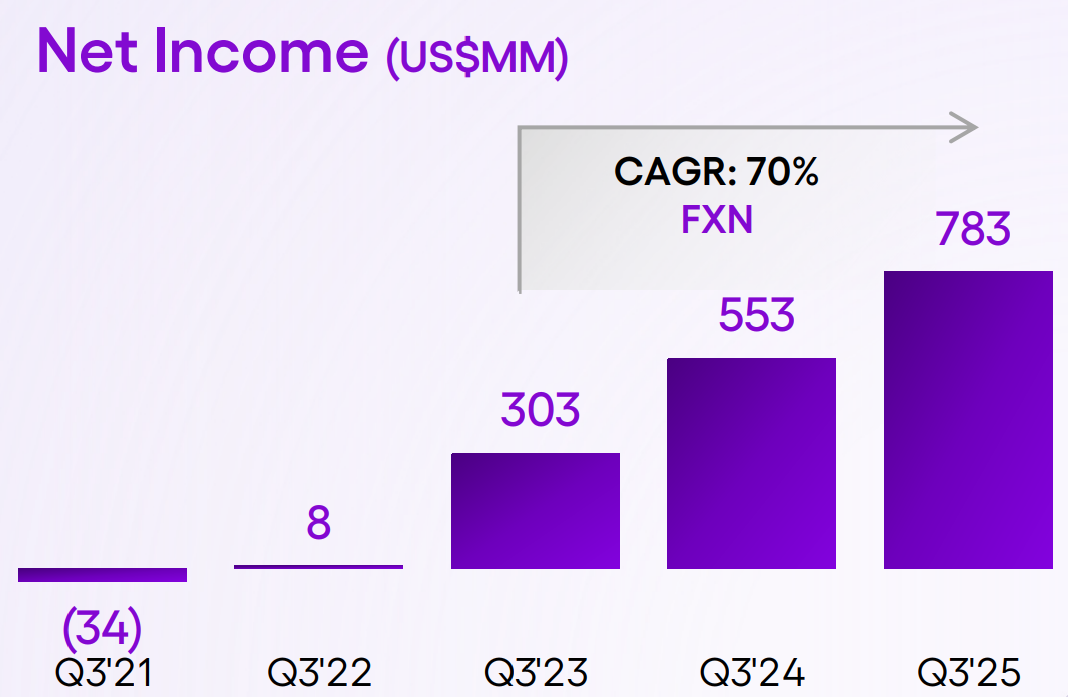 Daraus ergibt sich für Nubank ein hohes Gewinnwachstum und ein Return on Equity von bärenstarken 31%.